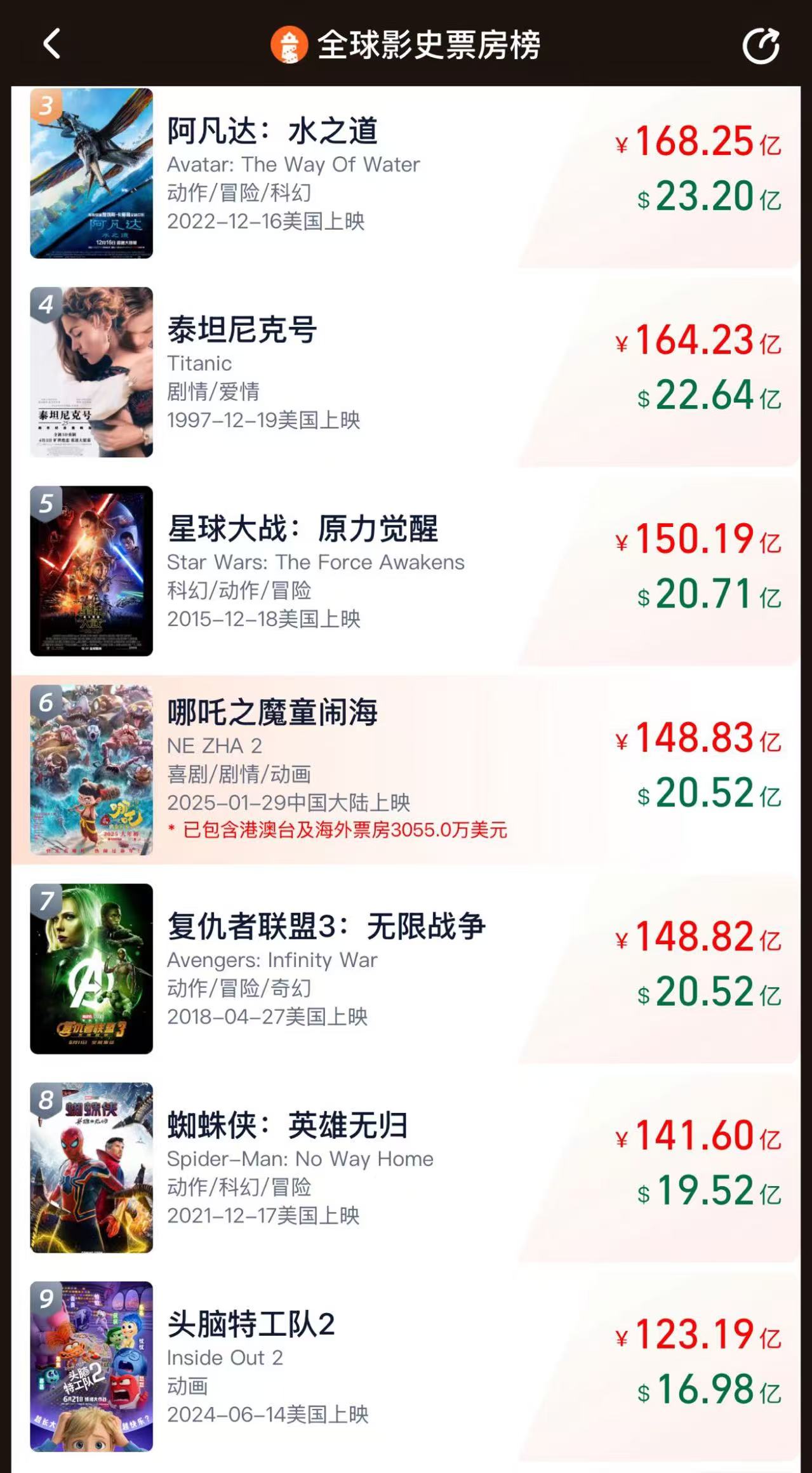 《哪吒2》位居全球影史票房第六 《哪吒2》位居全球影史票房第六