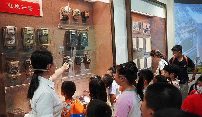 穿过镂空螺口灯泡造型的“光明之路”雕塑,小读者们仿佛踏入时光隧道。“油灯春秋”展区里,战国青铜灯与宋代盘形灯静静陈列,这些电灯的“祖先”诉说着人类征服黑暗的漫长历程。在民国电表与解放初期电网图前,家长们忙着为孩子讲解“一度电”的前世今生。